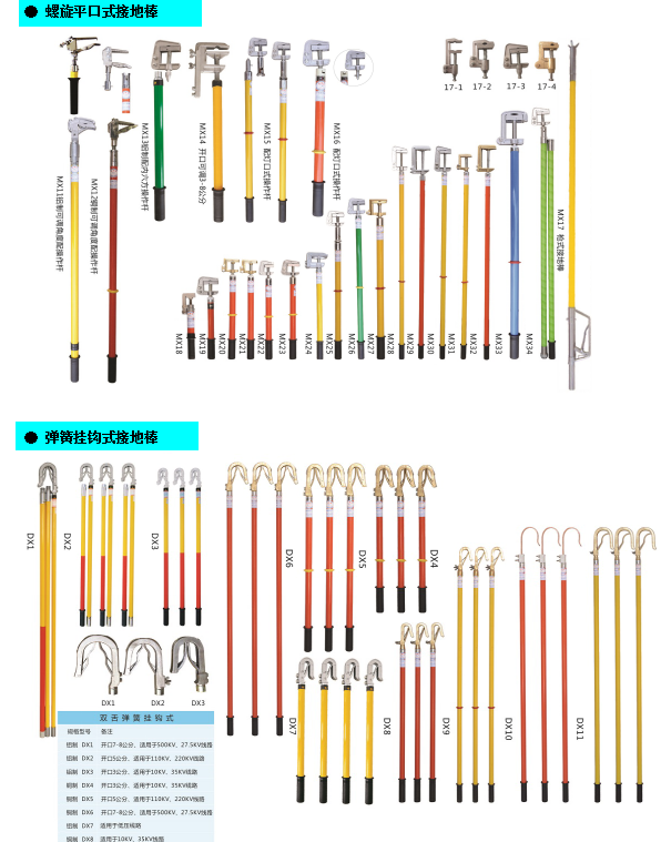 | 型號 | 型式 | 電壓等級 | 有效絕緣長度(mm) | 握柄長度(mm) | 限流管長度(mm) | 總長度(mm) | 節(jié)數 |